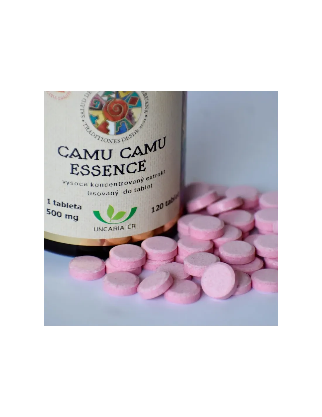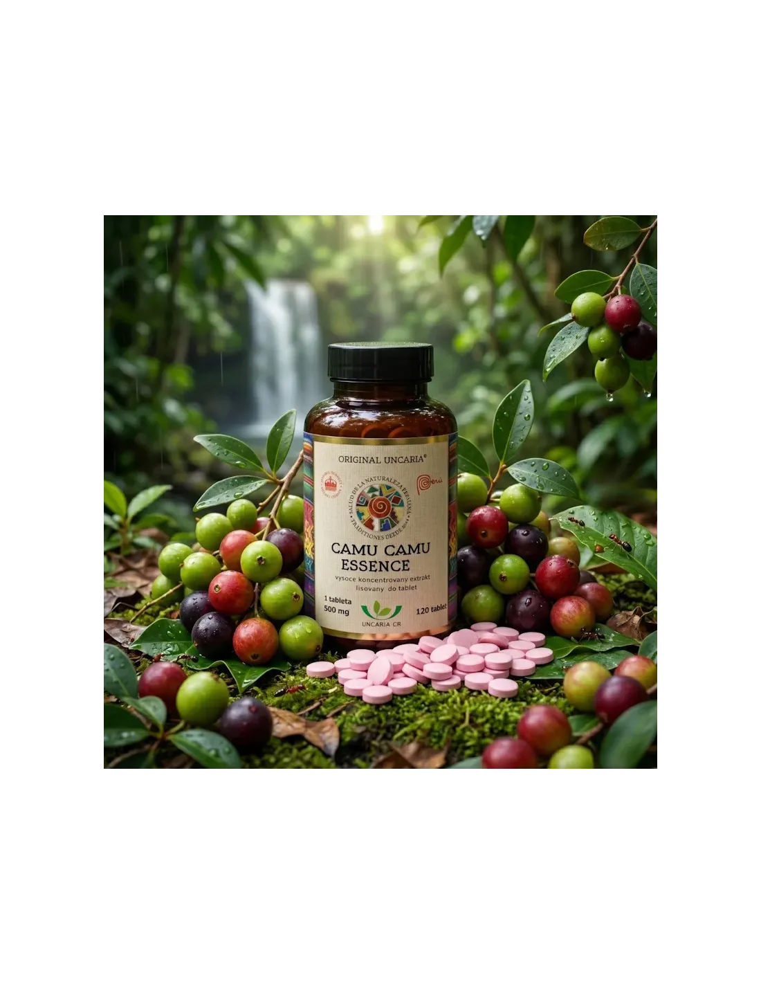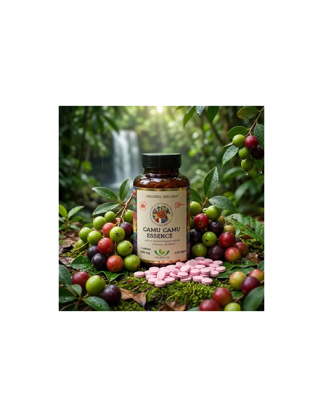 CAMU CAMU ESSENCE – inovativní novinka - silný extrakt z dužiny plodu amazonské rostliny Camu Camu. Přírodní zdroj vitamínu C z plodů Myrciaria dubia v praktické formě tablet k polknutí. Prémiový doplněk stravy. 90 % extraktu v jedné tabletě, minimum přísad, maximum koncentrace. Vitamín C pomáhá chránit organismus před infekcemi, podporuje imunitní systém, přispívá ke zdraví cév. Propagátoři Camu Camu tvrdí, že „rozsvěcuje jejich den a rozjasňuje jejich smysly”. Vysoce koncentrované složení s minimem přídavných látek pro maximální čistotu a účinnost. Balení obsahuje 60 tablet po 500 mg